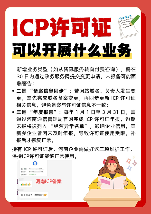 持有 ICP 许可证后,河南企业需做好三项维护工作。