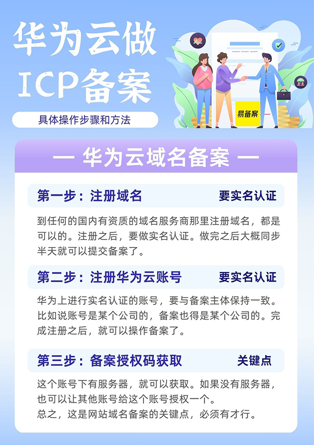 到任何的国内有资质的域名服务商那里注册域名,都是可以的。注册之后,要做实名认证。做完之后大概同步半天就可以提交备案了。第二步:注册华为云账号