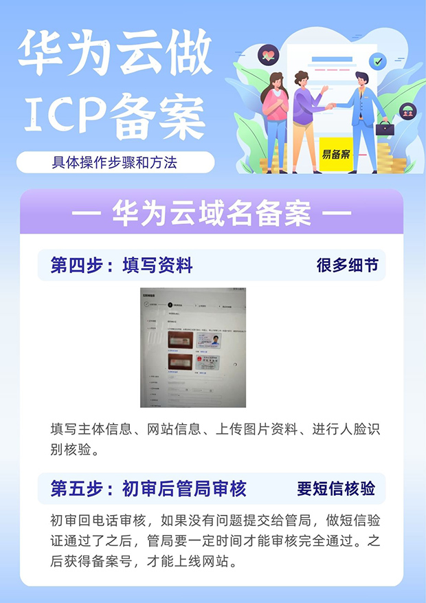 填写主体信息、网站信息、上传图片资料、进行人脸识别核验。