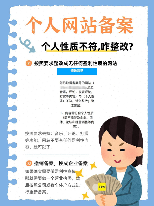 个人网站ICP备案,网站与个人性质不符咋整改?