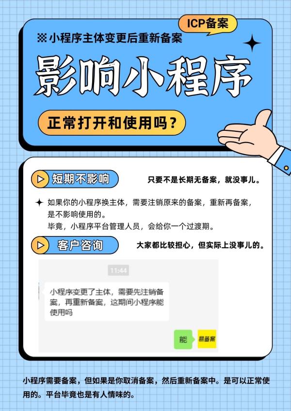 小程序主体变更后重新备案影响小程序正常打开和使用吗?
