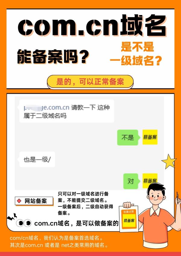 com.cn域名是不是 一级域名?能做ICP备案吗?