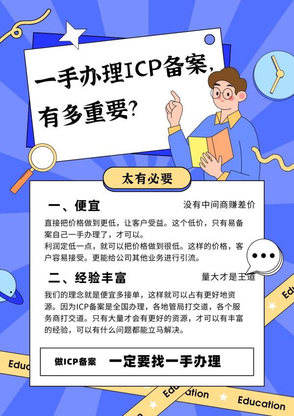 直接把价格做到更低,让客户受益。这个低价,只有易备案自己一手办理了,才可以。