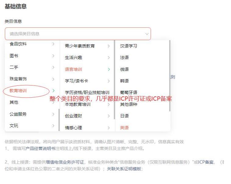 视频号线上授课,我们做的客户很多,都是找过来做ICP备案的,比如说心理咨询方面的老师,还有一些瑜伽老师,高尔夫球老师。整体上来看 ,教育培训类目的入驻条件大概是这样的:
