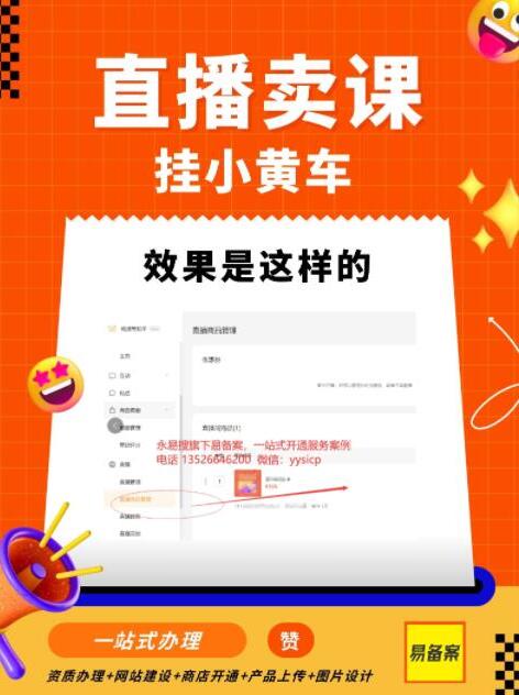 如果您想要直播卖课,但是不会申请小店,不会挂小黄车,欢迎找我们!可以帮您做ICP备案,也可以做网站让ICP备案申请之后保持网站打开,更可以申请类目,帮助上传产品,还可以设计商品详情页。