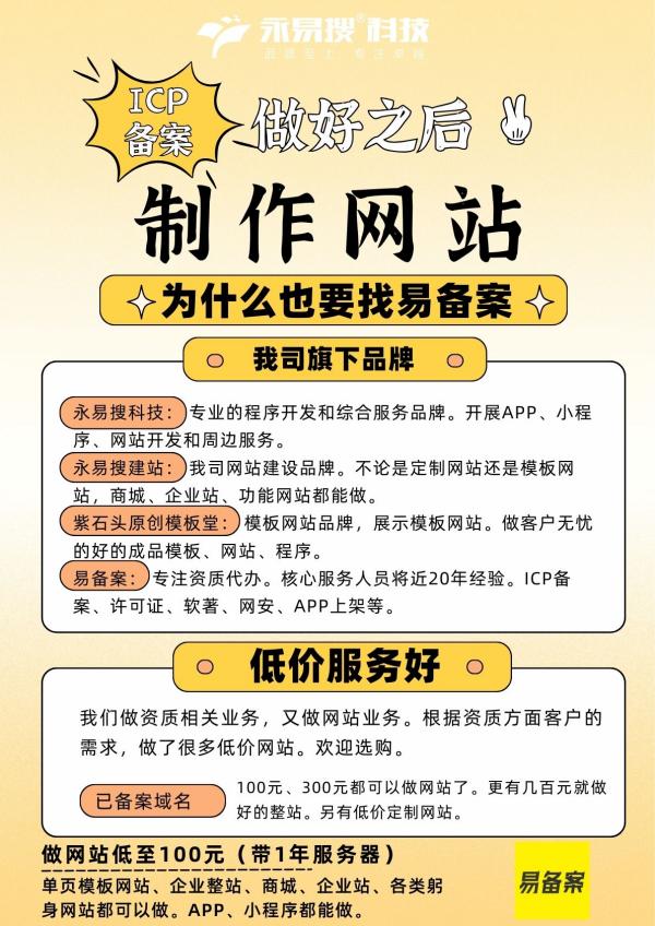 易备案:专注资质代办。核心服务人员将近20年经验。ICP备案、许可证、软著、网安、APP上架等。