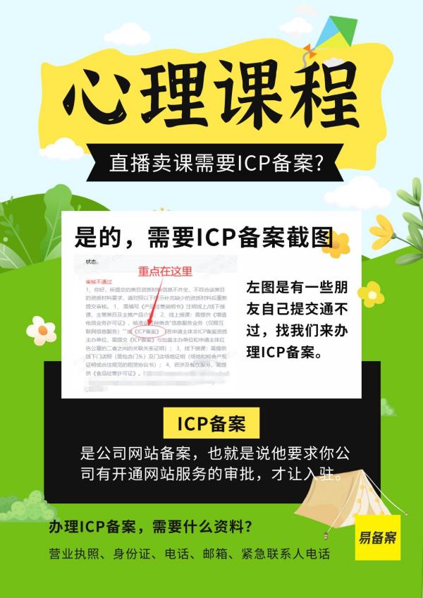 网上直播卖心理课程,需要ICP备案截图怎么办理