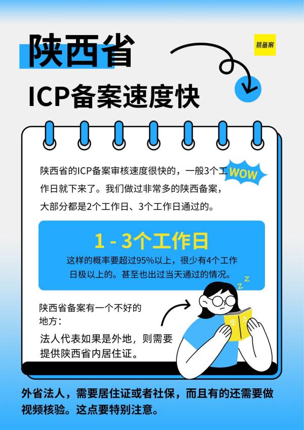 陕西省的ICP备案审核速度很快的,一般3个工作日就下来了。我们做过非常多的陕西备案,大部分都是2个工作日、3个工作日通过的。