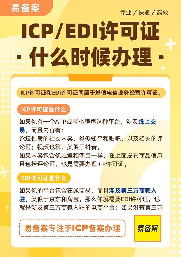 什么是ICP许可证,什么是EDI许可证?不少朋友开展业务的时候不清楚这个是什么,也不知道自己到底需不需要办理,今天,易备案就来详细解答一下。
