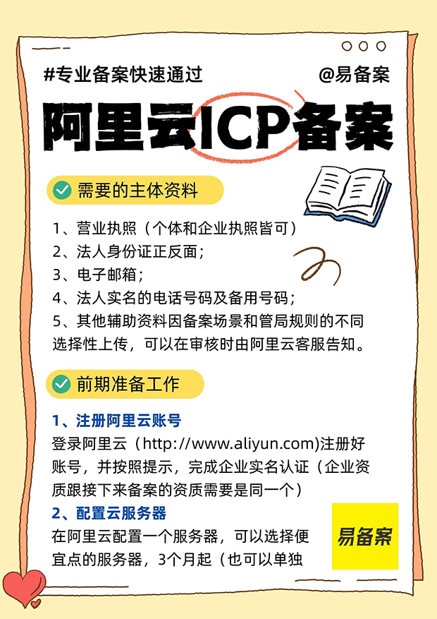 在阿里云配置一个服务器,可以选择便宜点的服务器,3个月起(也可以单独购买icp备案服务码)