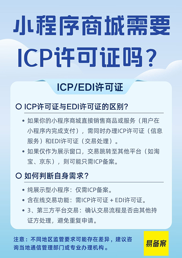 小程序商城需要ICP许可证吗?与EDI许可证有何区别?