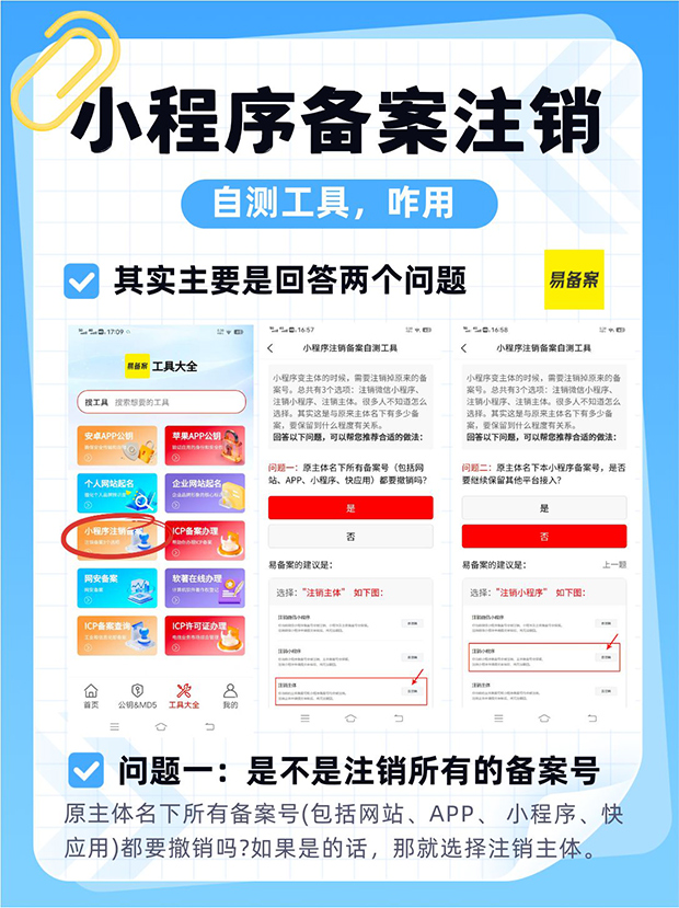 小程序备案注销工具吗,咋用?回答2个问题就可以.