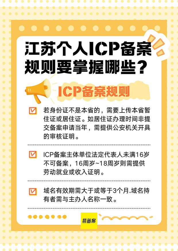 2.ICP备案主体单位法定代表人未满16岁不可备案,16周岁~18周岁则需提供劳动就业或收入证明。