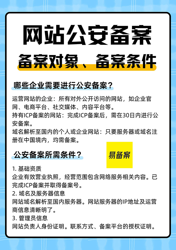 网站公安备案:备案对象、备案条件
