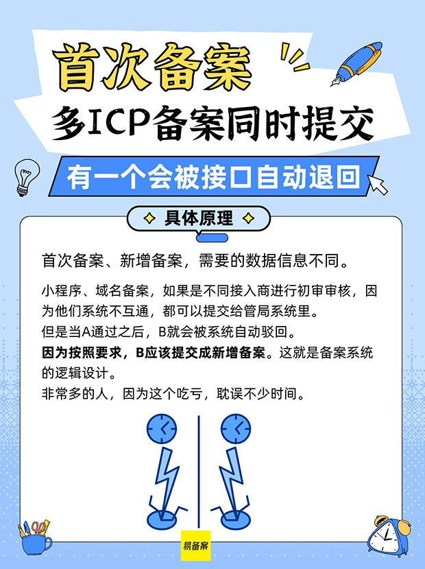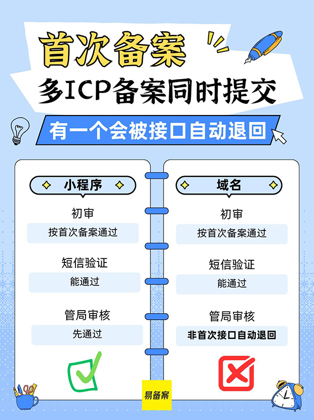 首次备案小程序和域名ICP备案同时提交,会自动退回1个