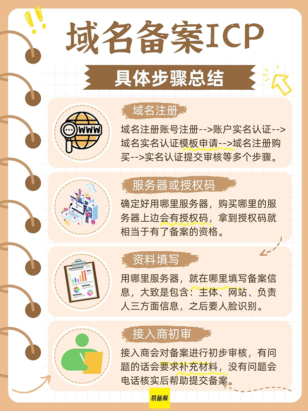 域名注册账号注册-->账户实名认证-->域名实名认证模板申请-->域名注册购买-->实名认证提交审核等多个步骤。