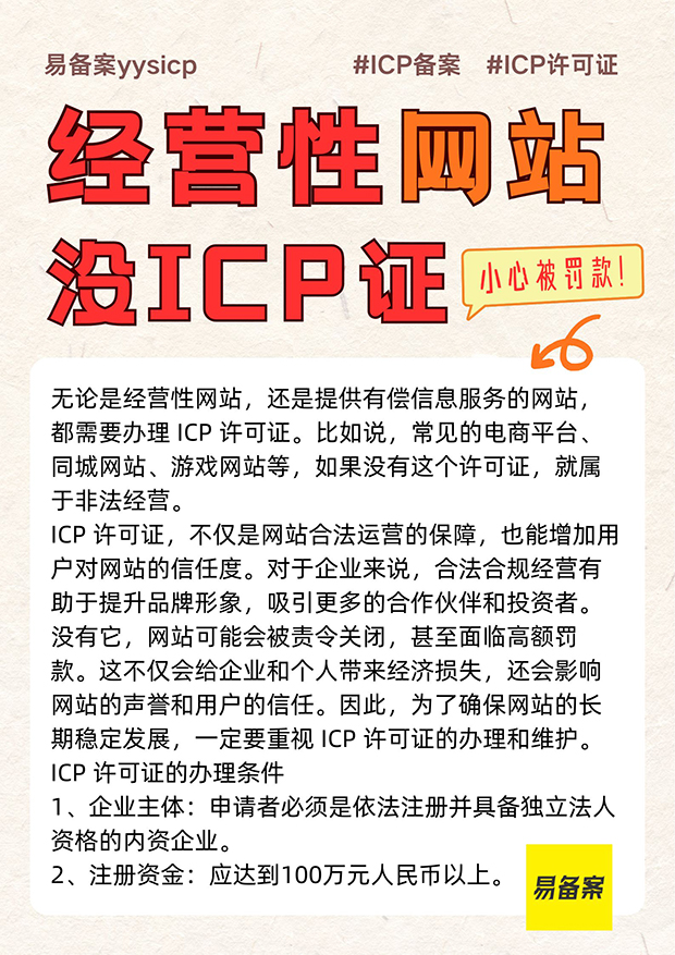 经营性业务网站没有ICP许可证,小心被罚款!
