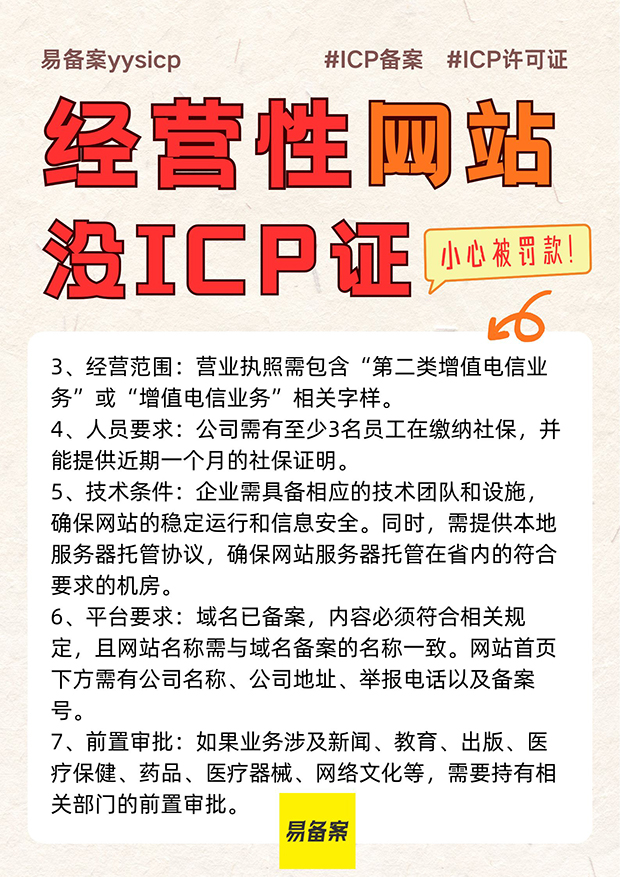 5、技术条件:企业需具备相应的技术团队和设施,确保网站的稳定运行和信息安全。同时,需提供本地服务器托管协议,确保网站服务器托管在省内的符合要求的机房。
