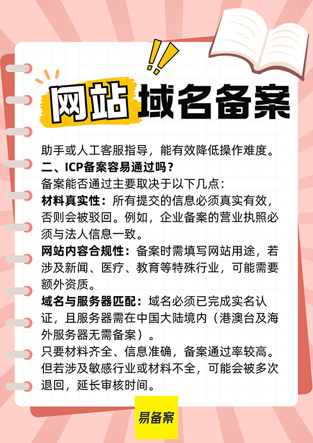 在中国,网站上线前必须完成ICP(互联网内容提供商)备案,以确保网站内容的合法性和安全性。对于初次接触备案流程的用户来说,往往会关心两个问题:ICP备案操作难度大吗?容易通过吗?