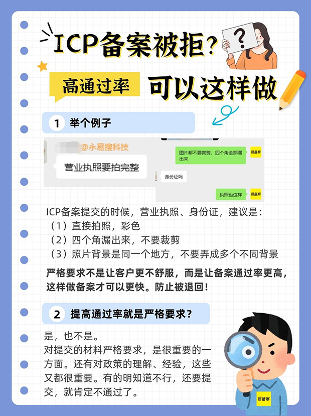 1、ICP备案提交的时候,营业执照、身份证,建议是: