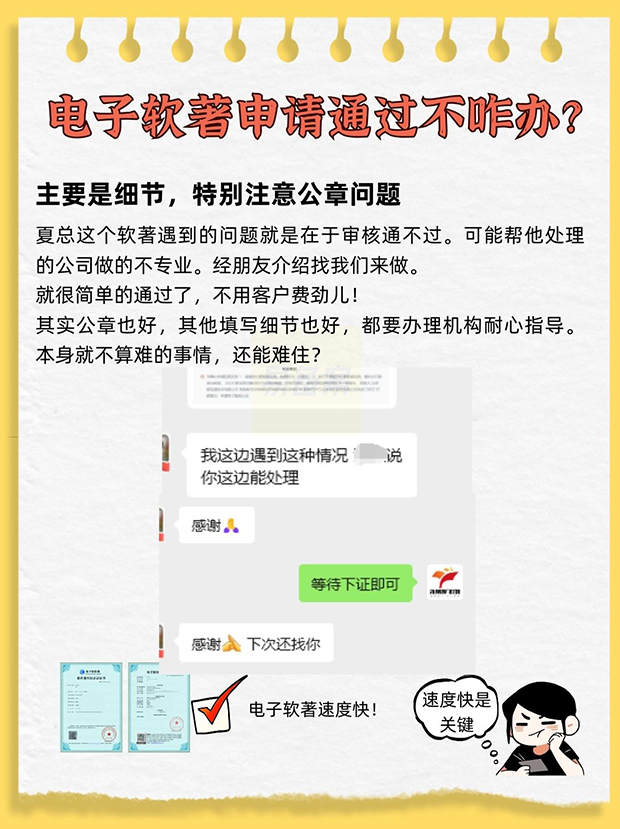 夏总这个软著遇到的问题就是在于审核通不过。可能帮他处理的公司做的不专业。经朋友介绍找我们来做。