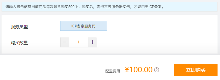 2.每个云产品的免费ICP备案服务码使用完毕后,如果该云产品仍在有效期,可额外绑定20个付费的ICP备案服务码,有效期为12个月,超期后备案服务码将无法使用。阿里云官方提供的备案服务码购买价格100元一个。